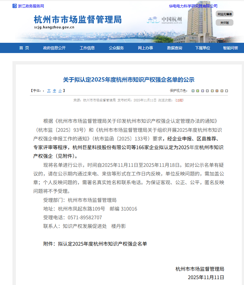 近日,杭州市市场监督管理局下发文件《关于拟认定2025年度杭州市知识产权强企名单的公示》,杭州经纬信息技术股份有限公司成功入选,成为杭州市知识产权领域的标杆企业之一!